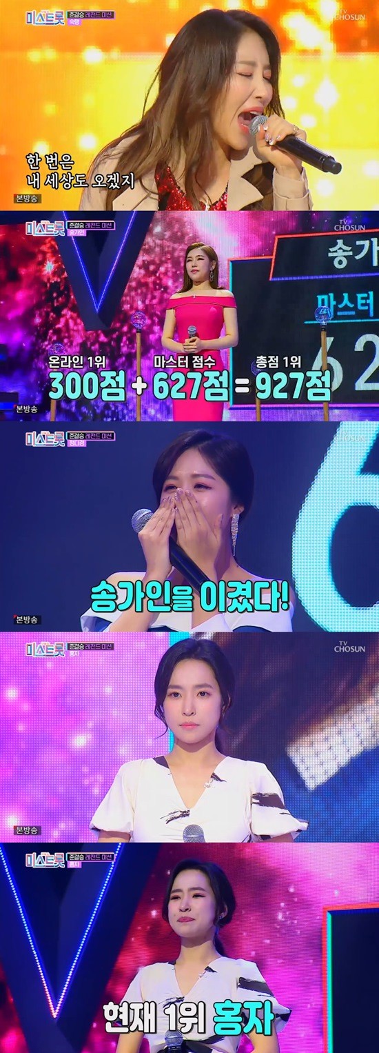 '미스트롯' 가수 홍자가 송가인을 제치고 전체 1위에 오르며 시청자들의 시선을 사로잡았다.