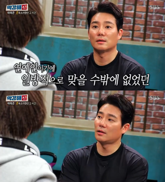 폭행 피해를 입었던 이야기도 쿨하게 꺼냈다. 그는 지난 2017년 1월 일반인과의 폭행 시비에 휘말린 바 있다. 당시 그는 경기도 용인시 수지구의 한 주점에서 A씨에게 폭행을 당했다. 주먹과 발로 수차례 얻어맞은 이태곤은 코뼈 골절 등의 상해를 입었다.