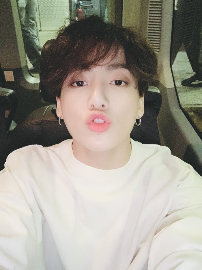 공개된 사진 속에는 흰색 티셔츠를 입은 정국이 카메라를 바라보며 입술을 살짝 내밀고 있는 모습이 담겨있다. 부스스한 헤어스타일이 정국의 러블리한 매력을 한층 배가시킨다. 특히, 근접샷에도 굴욕 없는 투명한 피부가 시선을 사로잡는다.