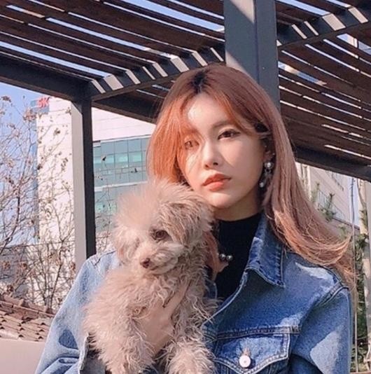 큐리는 19일 자신의 인스타그램에 사진 세 장을 게재했다. 게재된 사진 속 큐리는 야외에서 강아지를 안고 있다.