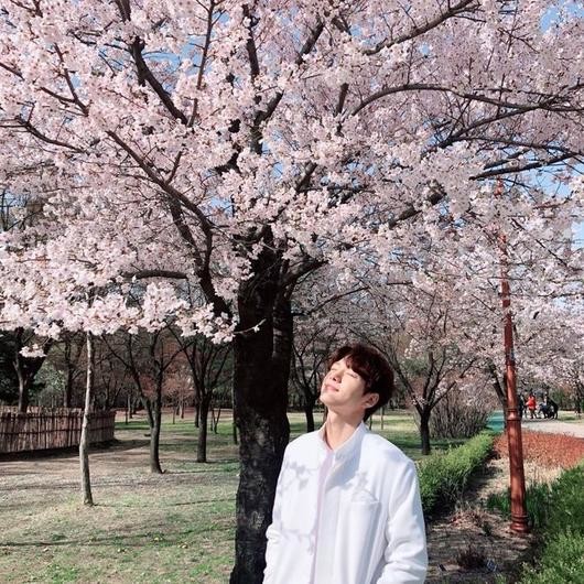 공개된 사진 속에는 활짝 핀 벚꽃 아래 지긋이 눈을 감고 봄의 정취를 느끼고 있는 김명수의 모습이 담겨있다.