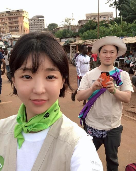 그의 앞에는 아름다운 외모를 뽐내는 아내가 있다. 두 사람은 카메론 시내로 보이는 곳에서 투샷을 찍으며 아프리카 봉사활동 현장을 공개했다.