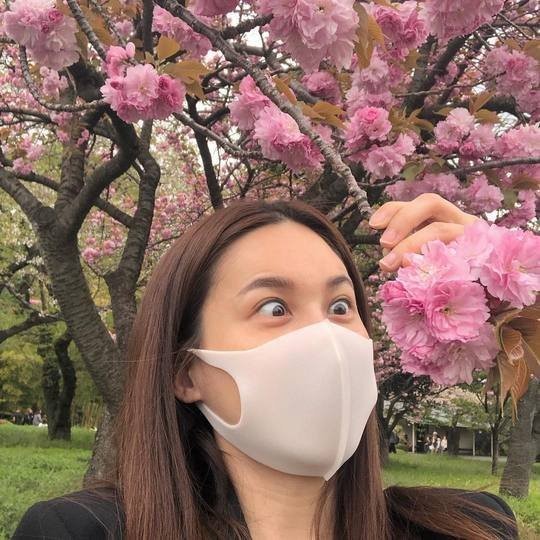 사진 속에는 벚나무 가지를 잡은 채 엽기 표정을 지은 아이비의 모습이 담겼다. 아이비는 눈을 크게 뜨고 겹벚꽃을 바라보고 있다. 아이비의 코믹한 표정이 눈길을 끈다.