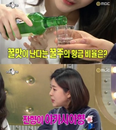 김구라는 “그냥 술”이라고 말했고 차태현은 “맥주에 소주 맛이 가려지는 거다. 하지만 꿀주라고 하기엔 뒤에 너무 생소주맛이다”라고 말해 좌중을 폭소케 했다.