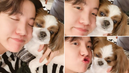 사진 속 제이홉은 시추 종류의 강아지와 함께 얼굴을 맞대고 있는 모습으로 팬들에게 훈훈함을 선사했다.