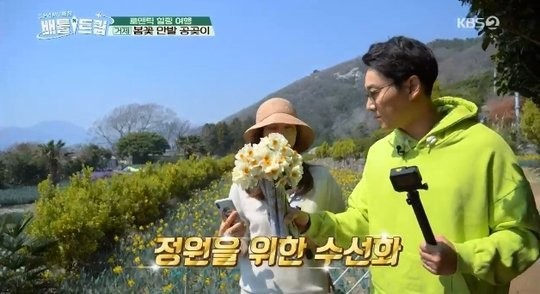 4월 20일 방송된 KBS 2TV '배틀트립'은 3주년 특집으로 MC들의 3도투어 2탄이 공개됐다. 이날 거제로 떠난 이휘재 문정원 부부는 아침식사 후 봄꽃이 잔뜩 피어있다는 공곶이로 향했다.