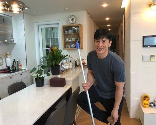청소 도구를 들고 환하게 웃고 있는 김재우의 모습이 훈훈함을 자아낸다.