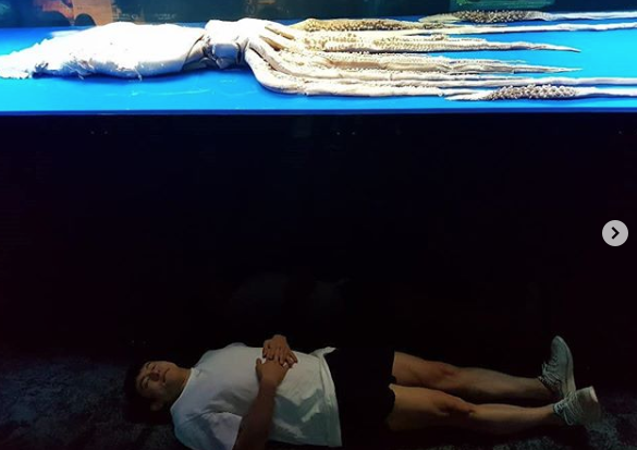 사진 속에는 기안84가 대왕오징어 아래 같은 포즈로 누워 있는 모습이 담겨 누리꾼들의 시선을 사로잡았다.