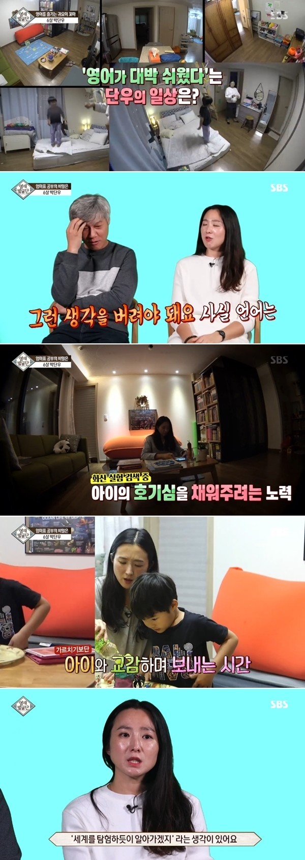 영어가 쉽다는 단우의 일상을 보니 엄마와 영어로 이야기 하며 노는 일상이 드러났다. 엄마는 어떻게 영어를 잘하는 것일까? 그녀는 아이의 동화책을 읽어주며 함께 영어 공부를 시작했다고 밝혔다. 작가인 엄마가 영어 때문에 가로 막혔던 일 때문에 아이에게는 그런 경험을 주고 싶지 않아 시작하게 된 일이었다.