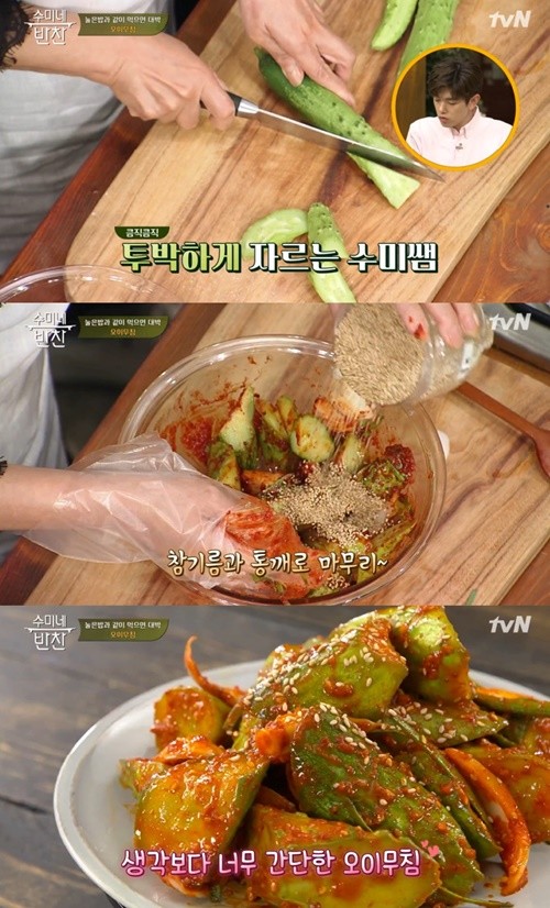 최근 방송된 tvN '수미네 반찬'에서는 김수미가 셰프들과 함께 오이무침 만들기에 나서는 모습이 전파를 탔다.