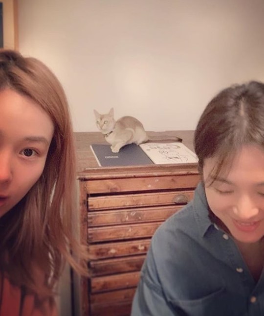 지난 23일 옥주현 소속사 포트럭 SNS 계정에는 송혜교와 옥주현의 셀피 사진이 올라와 눈길을 끌었다.