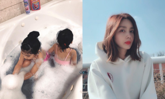 공개된 사진 속 박솔미의 두 딸은 함께 욕조 속에 들어가 거품 목욕을 하고 있다. 수영복을 입고 거품을 만지고 노는 두 딸의 모습이 앙증맞다.