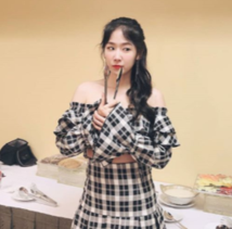 소유는 체크무늬 패턴 의상으로 귀여운 매력을 더했다.
