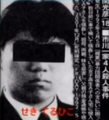 일가족 4명을 살해하고, 여고생을 성폭행했던 세키 데루히코의 나이는 19세였다. 그의 범행은 여고생 아버지의 직장 동료가 집에 전화를 걸었고, 이상함을 눈치채 경찰에 신고하면서 드러났다.