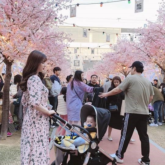 율희, 23세 어린 엄마...유모차 끌고 벚꽃 구경