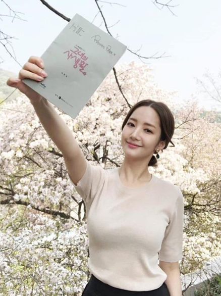 사진 속에서 박민영은 '그녀의 사생활' 대본을 손에 들고 벚꽃 나무 앞에 서서 카메라를 향해 포즈를 취하는 모습으로 보는 이들의 감탄을 자아냈다.