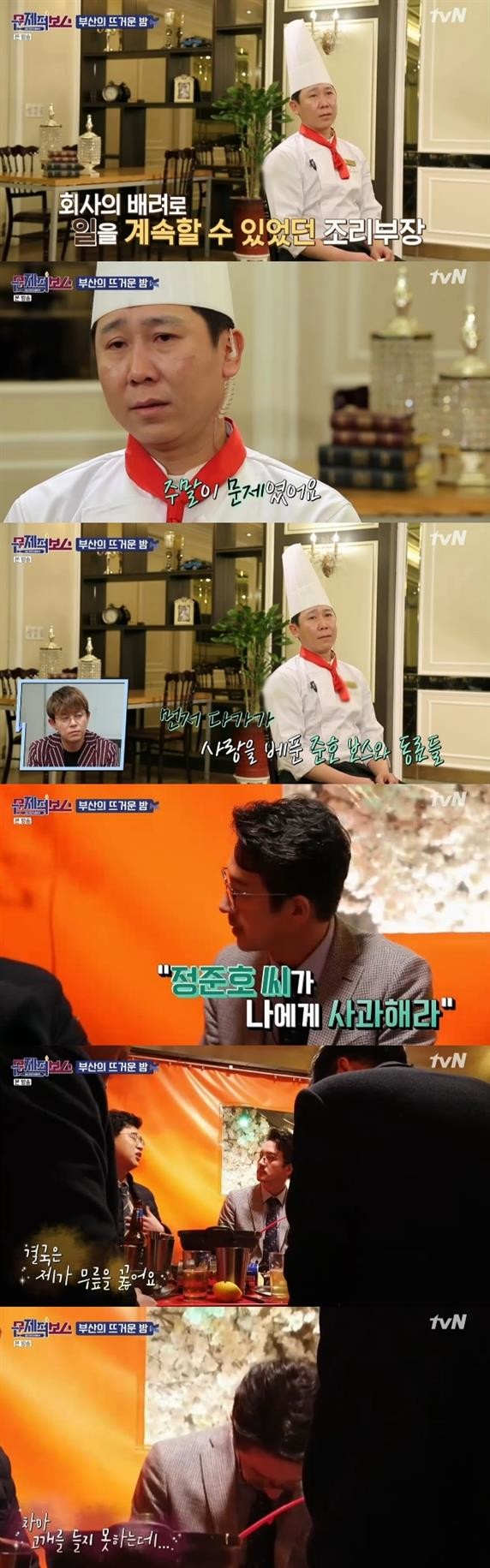 이에 직원들 역시 정준호를 향한 고마운 마음을 전했다. 특히 조리부장은 제작진과의 인터뷰에서 "일을 시작했을 당시, 딸을 혼자 키우고 있었다"며 "그래서 일찍 마치는 직업을 찾으려고 했는데, 회사에서 배려를 많이 해줬다"며 울먹였다.