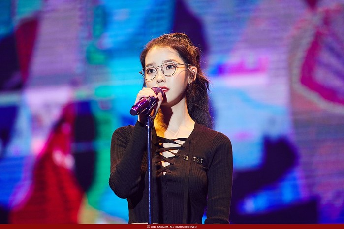 공개된 사진 속에는 아이유가 블랙 색상의 니트를 입고 머리를 질끈 묶은 채 무대에서 노래를 부르는 모습이 담겨있다. 특히, 안경을 써도 빛나는 아이유의 인형 미모가 감탄을 자아낸다.