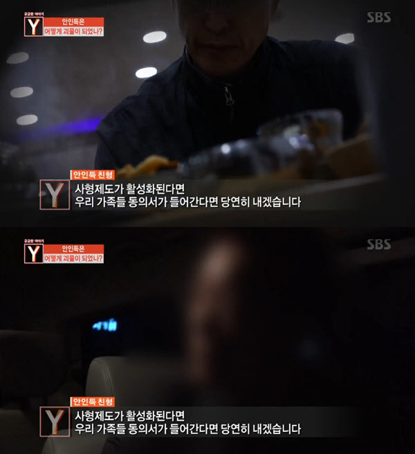 안인득의 친형은 "사형제도가 활성화된다면, 우리 가족의 동의서가 들어가야한다면 당연히 내겠다"고 말했다.