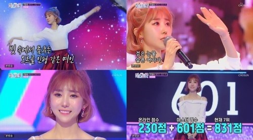 이날 하유비는 레전드 미션에서 장윤정의 ‘블란서 영화처럼’으로 무대를 꾸몄다. 우산을 쓰고 등장한 하유비는 오르골 인형 같은 비주얼과 동작, 묘한 목소리로 한 편의 뮤지컬 같은 무대를 선보였다.