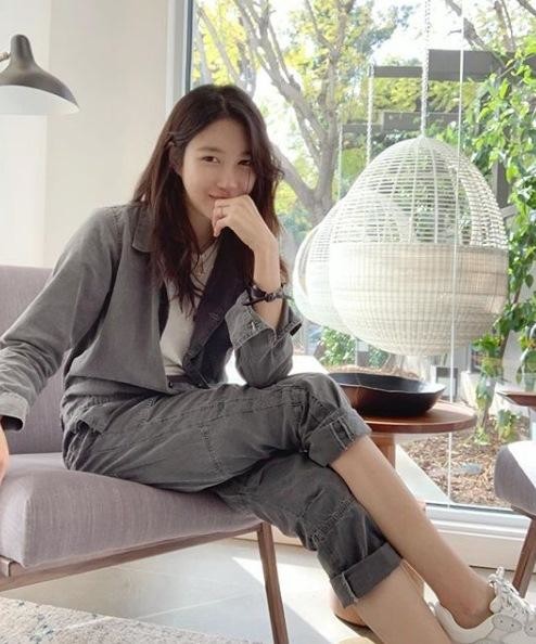 이지아는 편안한 차림으로 동안 미모를 뽐내고 있어 눈길을 사로잡는다.