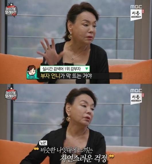 이날 김수미는 "이런 방송은 처음이다"고 입을 열었다. 이에 김구라, 정형돈 등 기존 멤버들이 "강부자 선생님도 출연하셨는데 보셨냐"고 물었다. 그러자 김수미는 "일본에 있을 때 강부자 언니 이름이 실검(실시간 검색어)에 뜨더라"며 "솔직히 돌아가셨나 했다. 손이 떨리더라"고 솔직히 털어놨다.