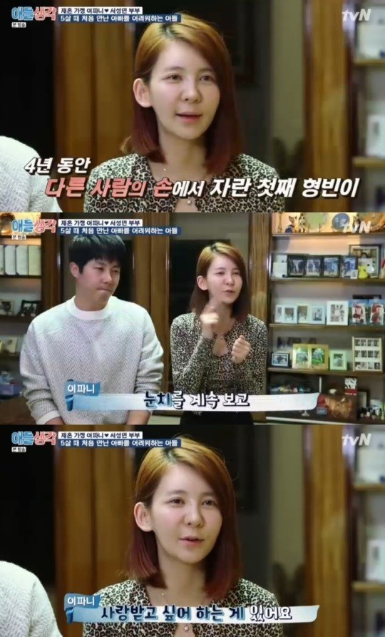 이파니는 이어 "제가 아이를 1년 정도 키우고 상황이 안정되었을 때 다시 데려오기까지 4년 정도 시간이 걸렸다. 그러다보니 아이가 눈치를 계속 보고 누군가에게 사랑받고 싶어하는 면이 있다"고 언급했다. 그러면서 "아이가 좀 더 밝았으면 좋겠다"는 바람을 전했다. 자기 생각을 솔직하게 표현하는 둘째에 비해 첫째 형빈이는 '미안해', '잘못했어', '사랑해'라는 표현을 잘 하지 않는다고.