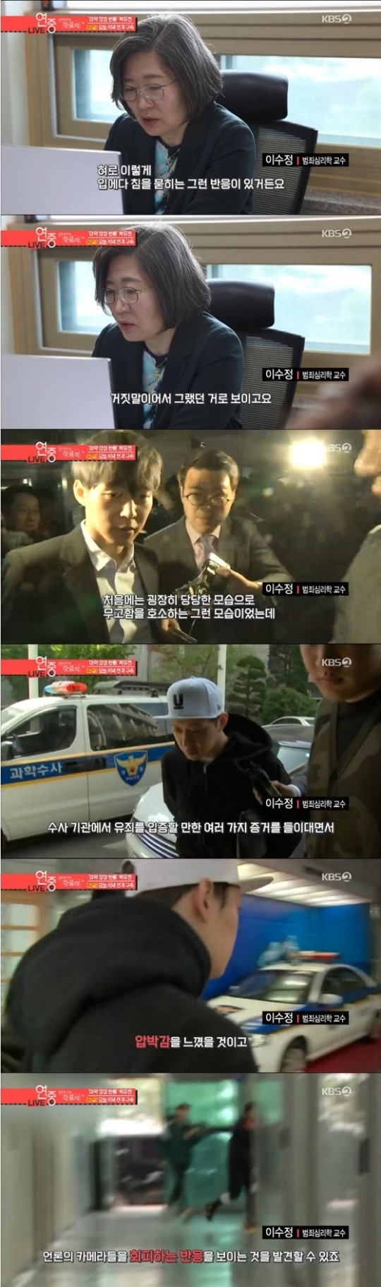이날 방송에서 이수정 범죄심리학 교수는 박유천이 기자회견 당시 보였던 행동에 대해 "혀로 입에다 치을 묻히는 그런 반응이 있다. 입을 마를 만한 어떤 스트레스가 많은 이야기였던 걸로 보인다. (박유천의 행동은) 거짓말이어서 그랬던 것으로 보인다"고 설명했다.