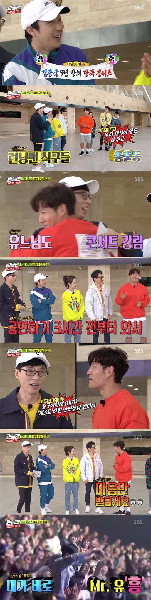 이어 김종국은 "재석이 형은 콘서트 시작 3시간 전부터 왔다"라고 밝혀 웃음을 자아냈다. 이에 유재석은 "종국이한테 내가 게스트를 하면 안 되겠냐 했더니 종국이가 넌지시 안 된다 라고 하더라"라고 설명했다.