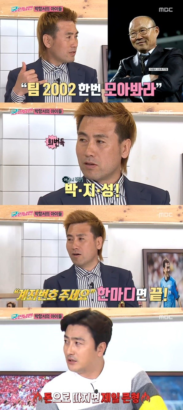 이날 권오중은 "'팀 2002' 회식할 때 가장 회식비를 많이 내는 사람은 누구냐"고 물었고, 김병지는 "박항서 감독님"이라고 답했다.