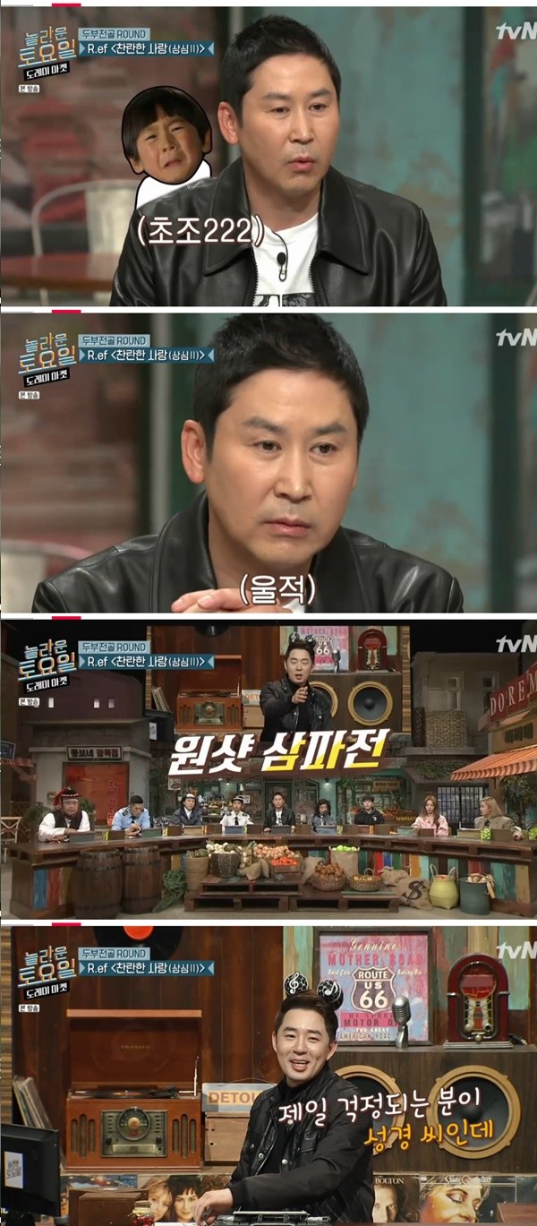 신동엽은 "아들이 얼마 전에 '아빠는 왜 한 번도 원샷을 못 받냐'고 펑펑 울었다"며 원샷을 향한 의지를 불태웠다.
