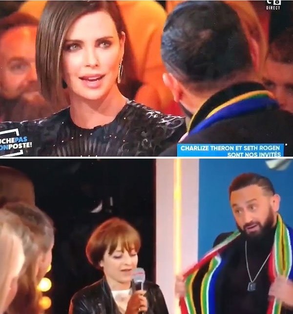 26일(현지시간) 영국 데일리메일은 프랑스 인기 라이브 쇼 TPMP(Touche pas � mon poste!)에 출연한 할리우드 배우 샤를리즈 테론(Charlize Theron)이 여성 통역사에게 기습 뽀뽀한 진행자 시릴 하누나(Cyril Hanouna)에 일침을 가했다고 보도했다.