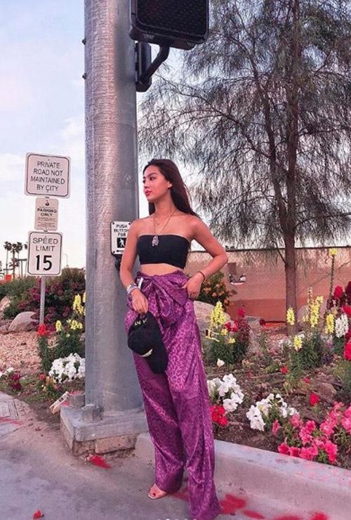 공개된 사진 속 김희정은 여행지 길거리에서 다소 과감한 의상을 입고 몸매를 과시 중이다.