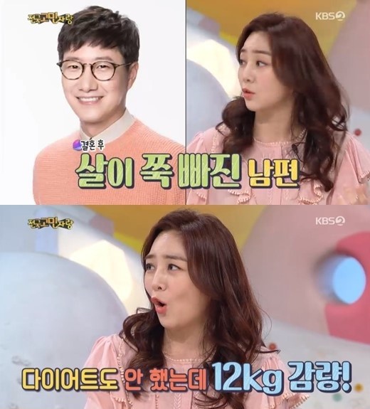 그는 이날 "남편이 살이 쪽 빠졌다"며 "다이어트를 한 것도 아니고 고생해서 12kg이 빠진 것"이라고 밝혔다.