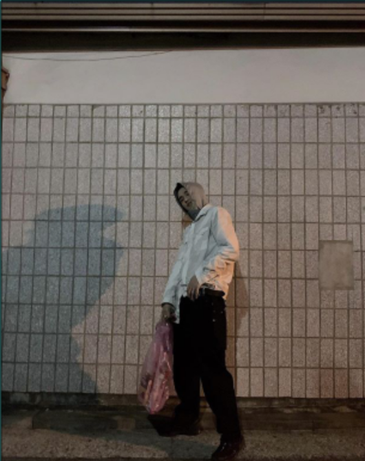 공개 된 사진 속에서 딘은 검은색 바지와 흰색 상의 그리고 모자를 쓰고 포즈를 취했다.