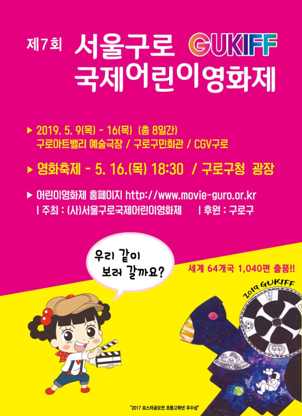 서울구로국제어린이영화제는 국내 유일의 어린이 영화제로, 올해는 ‘꿈, 영화로 빛나라’라는 슬로건으로 오는 5월16일까지 8일간 진행된다.