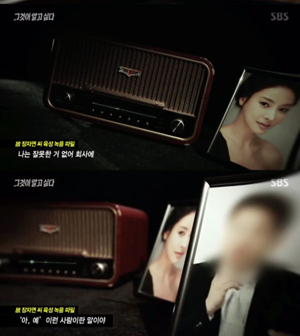 이날 방송에서는 장자연이 죽음을 선택하기 5일 전 고인과 소속사 관계자의 대화 육성 녹음 파일이 공개됐다.