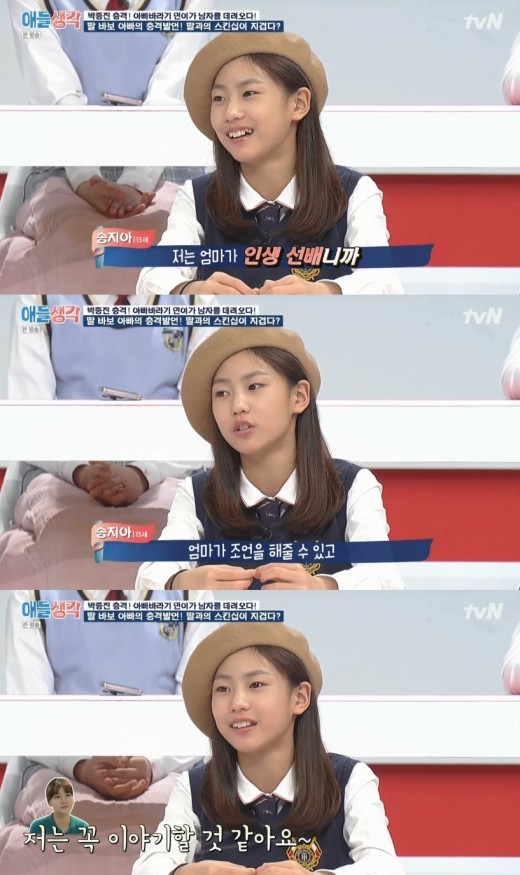 이에 송지아 양은 “나는 엄마가 인생 선배니까 꼭 얘기할 것 같다. 엄마가 내게 조언을 해줄 것”이라고 답하는 것으로 엄마 박연수를 향한 신뢰와 애정을 표했다.
