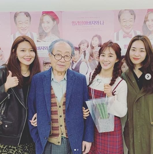 공개된 사진 속 이연희는 연극 '앙리할아버지와 나'에 출연 중인 신구, 유리와 나란히 서 있는 모습이다. 유리를 응원하기 위해 이연희와 수영이 함께 나섰다.