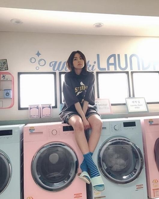 안소희는 29일 자신의 인스타그램에 "월요일 '으라차차 와이키키2'"라는 글과 함께 사진 한 장을 게재했다. 게재된 사진 속 안소희는 세탁기 위에 앉아 어딘가를 응시하고 있다.