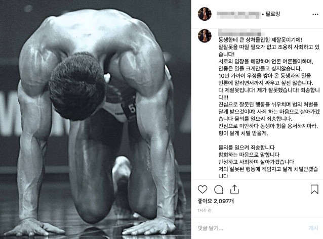 양호석은 지난 4월 30일 자신의 인스타그램을 통해 "동생한테 큰 상처를 입혔다. 사죄하고 있다"며 사과문을 올리며 누리꾼들의 시선을 모았다.