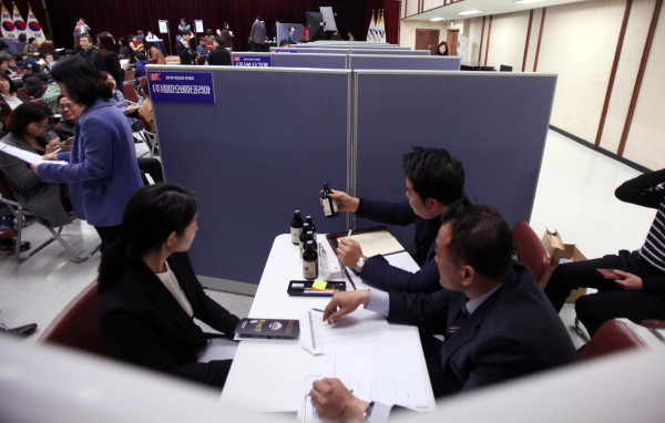| ▲ 지난 3월19일 열린 '19데이'에 참여해 면접을 보고 있는 청년들. (사진제공=송파구청) | ||