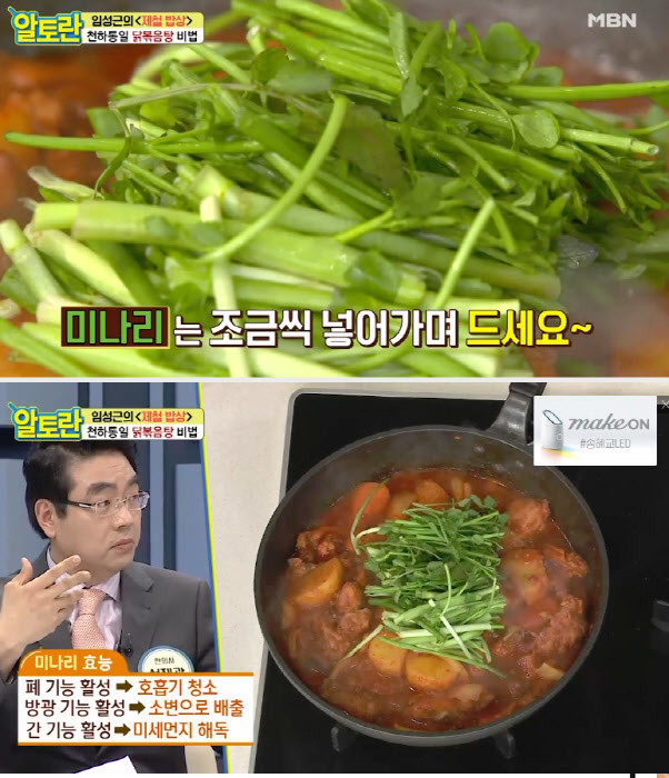 임성근 조리기능장은 "고추장을 마지막에 넣는 것이 포인트"라며 "마지막으로 미나리 한 줌을 넣으면 좋다"고 소개했다.