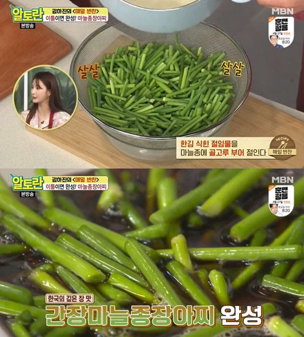최근 방송된 MBN '알토란'에서는 김하진 요리연구가가 마늘종장아찌 레시피가 전파를 탔다.