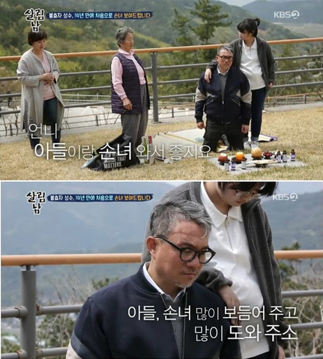 이어 가족들은 김성수의 부모님을 뵙기 위해 산소로 향했다. 김성수는 "지난해 가족묘를 만들면서 부모님 묘를 이장했는데 찾아뵙지 못했다"고 미안한 마음을 드러냈다.