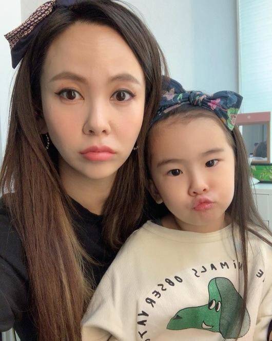 공개된 사진 속 김지우는 딸 루아나리를 안고 카메라를 응시하고 있다.