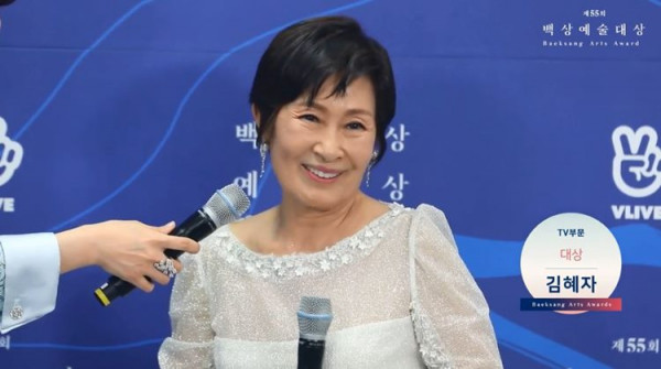 김혜자는 지난 5월 1일 열린 제55회 백상예술대상에서 JTBC 드라마 '눈이 부시게'로 TV부문 대상 영예를 안았다.