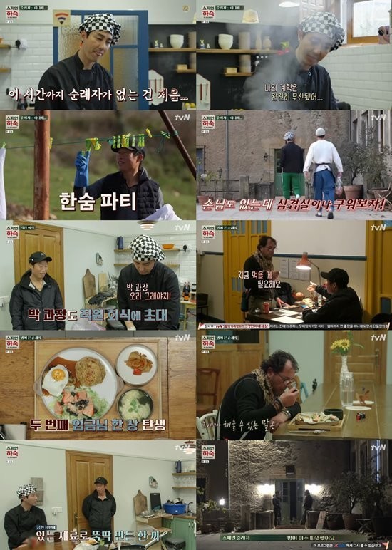 단 한명의 손님도 오지 않을 줄 알았지만, 한밤중에 한 명의 순례가가 알베르게를 찾았고, 차승원은 햄버그스테이크와 샐러드, 볶음밥을 뚝딱 만들어 대접했다. 배정남은 "완전 임금님상"이라며 감탄했다.