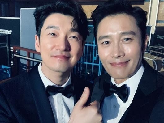 공개된 사진 속엔 1일 진행된 제55회 백상예술대상에서 만난 이병헌과 조승우의 모습이 담겼다. 이날 이병헌은 TV부문 남자 최우수연기상을 수상했다. 시상자는 조승우였다.