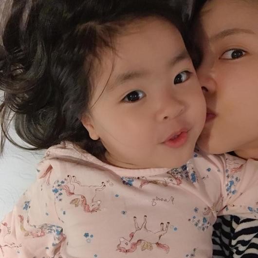 공개된 사진 속에는 엄마를 닮은 귀요미 딸 라니 양이 엄마와 침대 위에서 잠들기 전 인증샷을 찍고 있는 모습이 담겨 있다. 통통한 귀요미의 모습이 보는 사람을 미소 짓게 만든다.